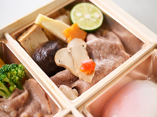 黒毛和牛すき焼三種 ロース 肩ロース 肩・ウデ松茸 丁字麩 長葱 焼南瓜 ブロッコリー
