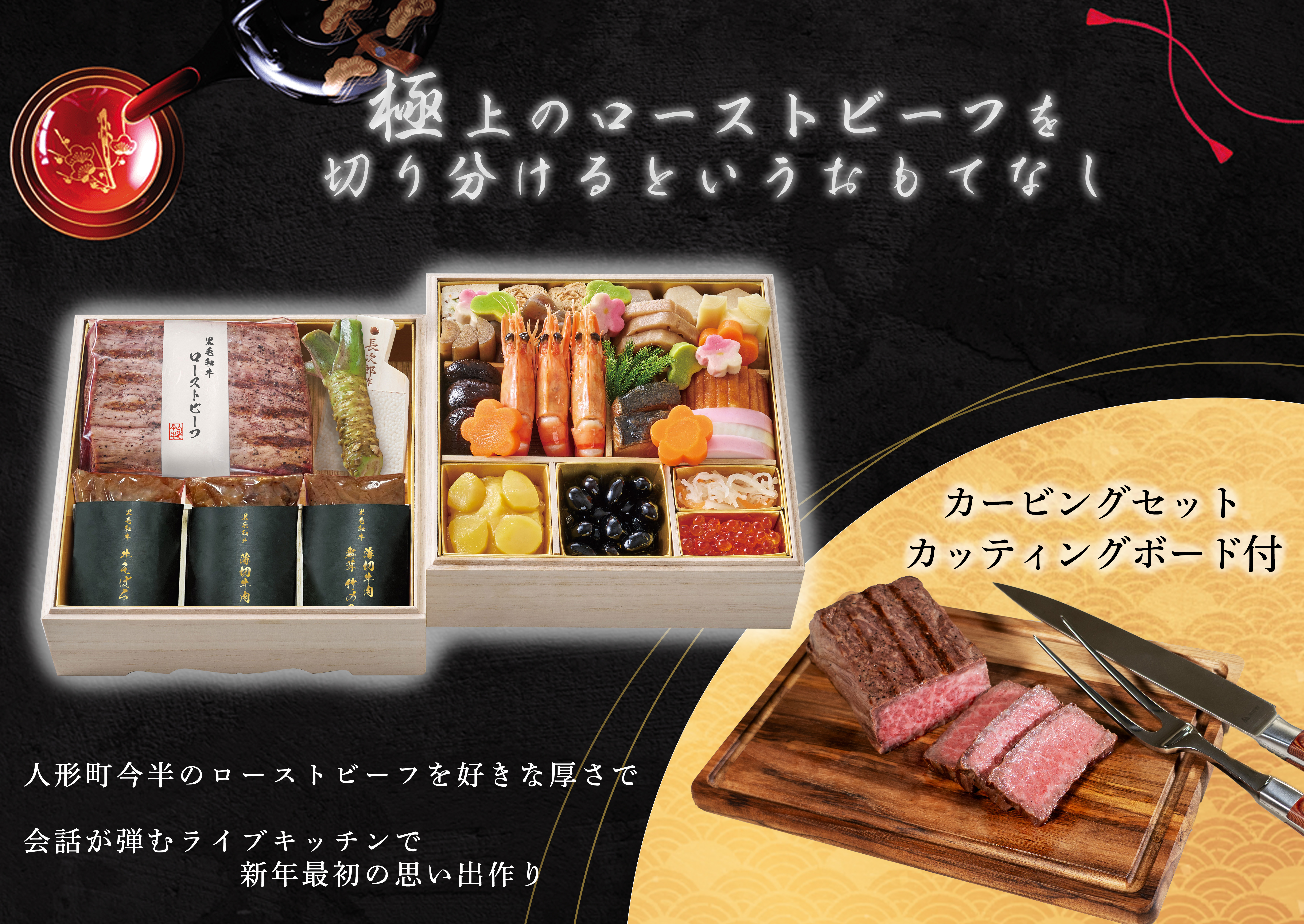 「人形町今半のローストビーフをもっと食べたい」というお客様の声から生まれた、新しいおせちのかたちです。