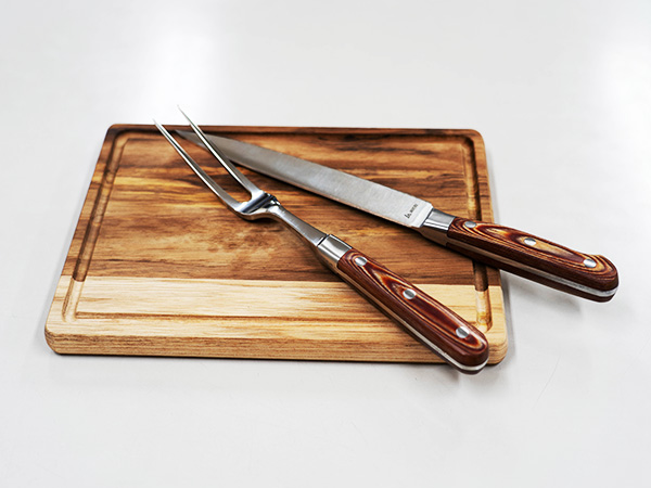カービングナイフ(全長325mm)とカービングフォーク(全長275mm)は、〈HOUEI製〉の品格ある仕立てです。